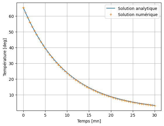 Comparer graphiquement la solution numérique avec la solution analytique :